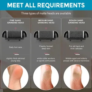 1.3 Different Roller Heads: Different Roller Head-Suitable for the callus of hands,cocked dead skin and more delicate skin care;Regular Roller Head-Suitable for the newly formed callus and normal skin care;Coarse Roller Head-Suitable for stubborn thick callus and the dead skin.